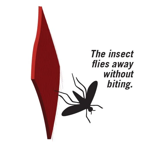When the insect lands on the fabric, the technology takes effect on the insect's nervous system, causing it to fly away even before it takes a bite. This action prevents the insect from returning and directs new insects away.